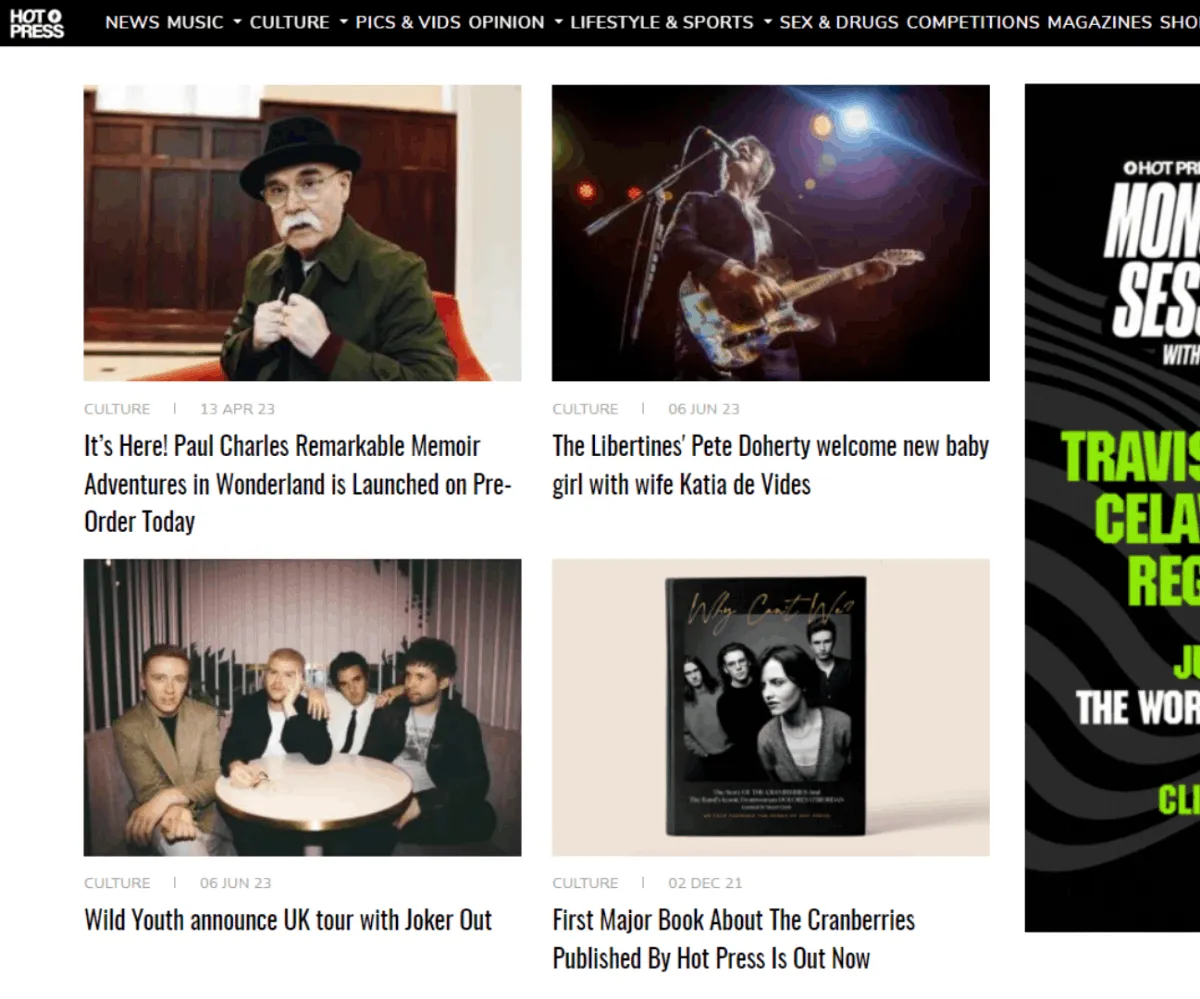 HotPress es una destacada revista de música y política con sede en Irlanda. Con una afianzada historia de más de 40 años, la revista se ha establecido como una plataforma fundamental para los músicos irlandeses, tanto nuevos como consolidados. Además de su cobertura musical, HotPress también se ha convertido en una voz prominente en la política irlandesa, proporcionando un análisis completo y debates en profundidad sobre temas clave que afectan al país.
